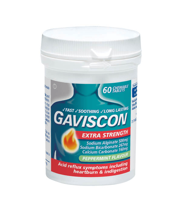 Gaviscon helps to relieve the burning pain of heartburn and discomfort of indigestion. It contains alginate - a gel substance which forms a barrier that helps to keep gastric contents in place, thereby reducing the likelihood of these irritating the delicate lining of the oesophagus.